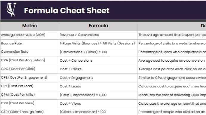 This cheat sheet simplifies the math behind your media metrics. With formulas for CPC, ROAS, CTR, and more, this guide is your shortcut to calculating performance like a pro. Whether analyzing results or pacing, these are essential for optimizing what matters most: results