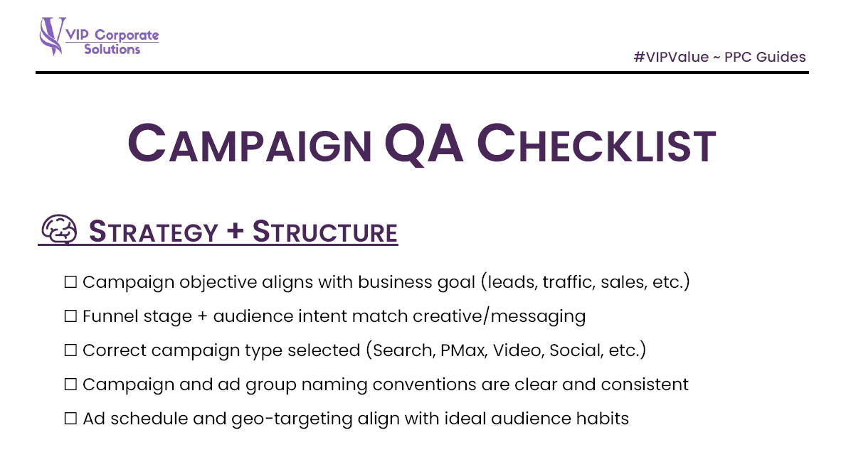 This checklist is your secret weapon before hitting “launch.” Whether prepping a new campaign or QA’ing updates for an existing one, this guide helps catch the small details that make a big difference — from broken links and tracking issues to final creatives and audience targeting.